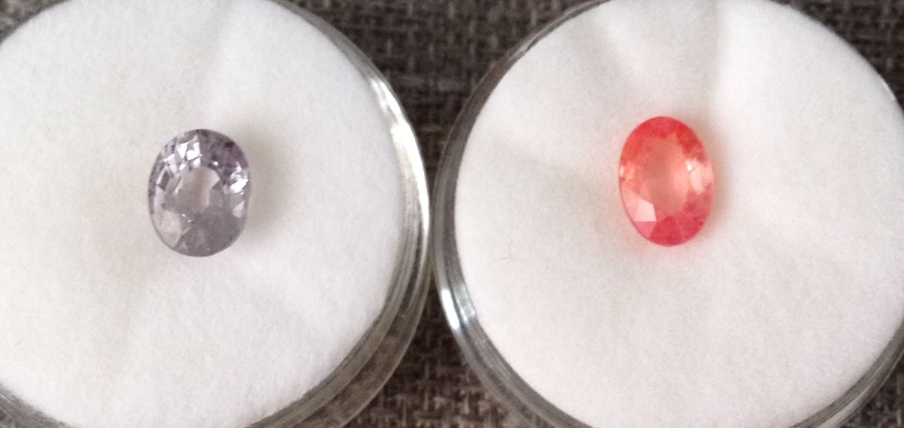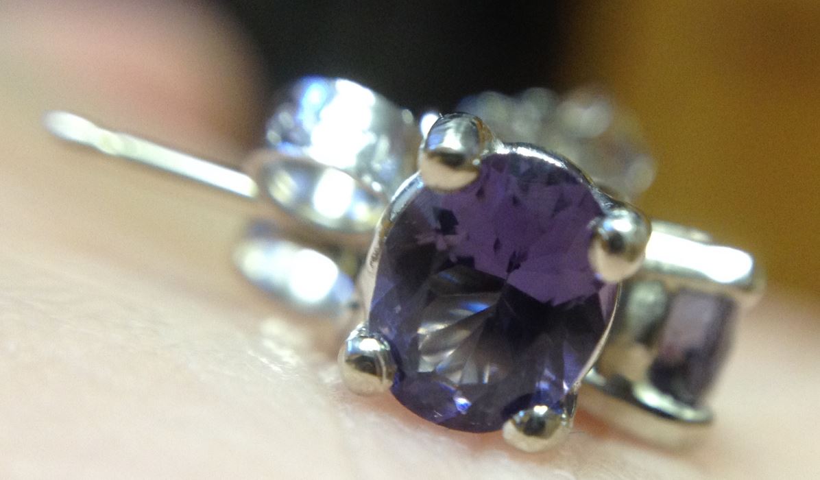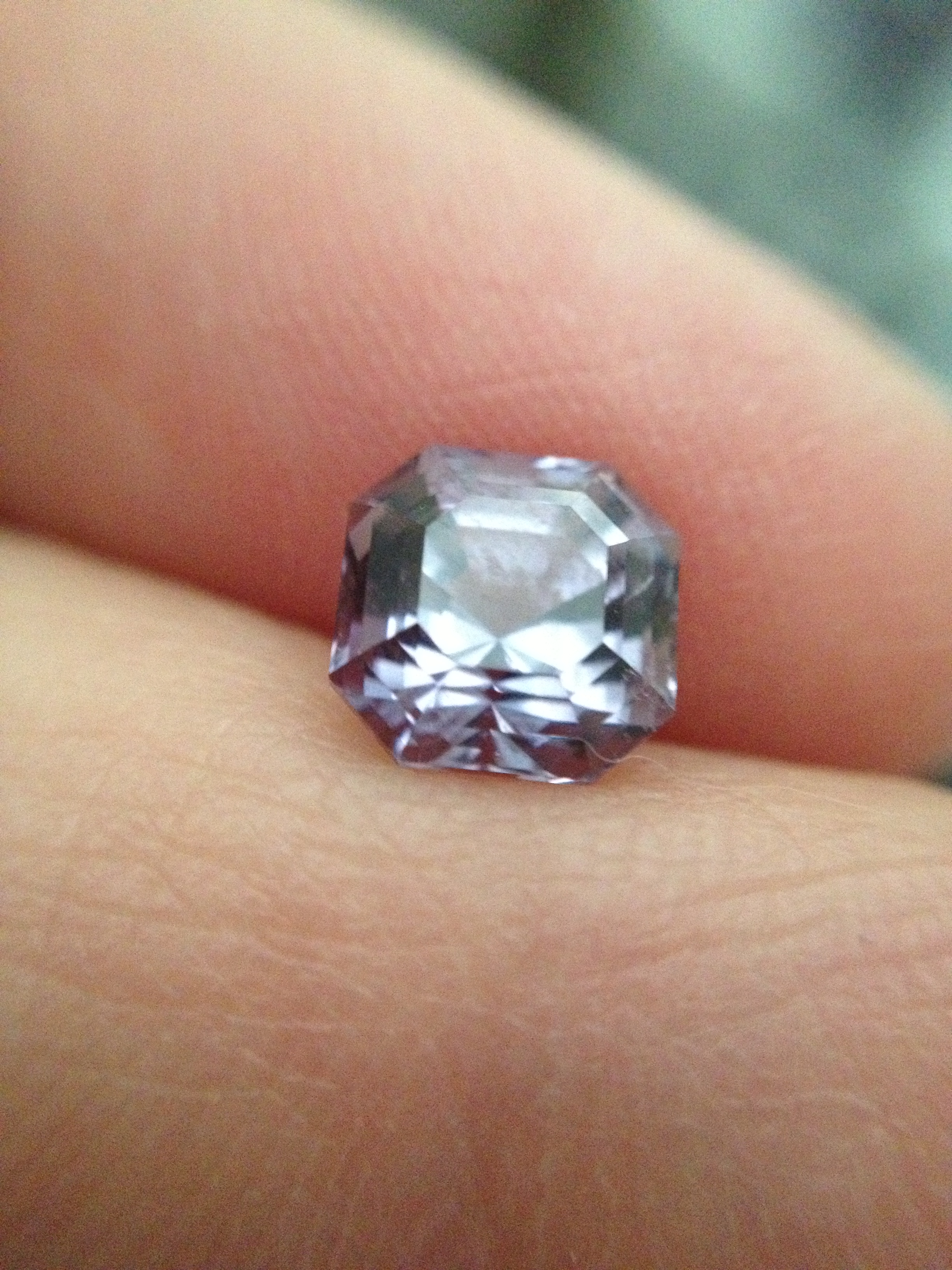 A purple sapphire shows some half and half darkening on the top half of this stone.
