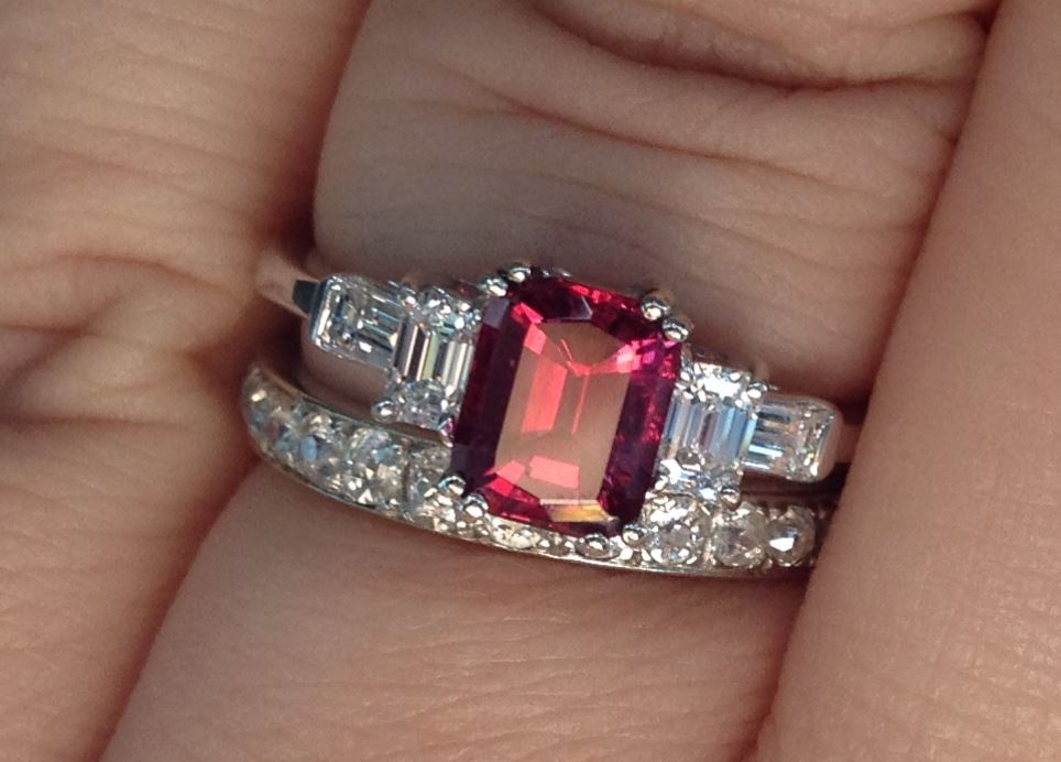 And then I found a ring that was basically perfect, and for a ridiculously awesome secondhand price, set the red spinel in a super nice turn-of-the-century setting that was very similar to what I was wanting for it – a bunch of step cuts.