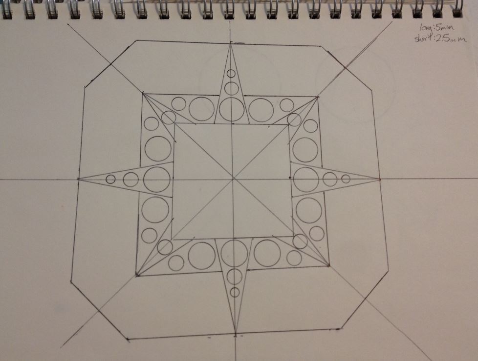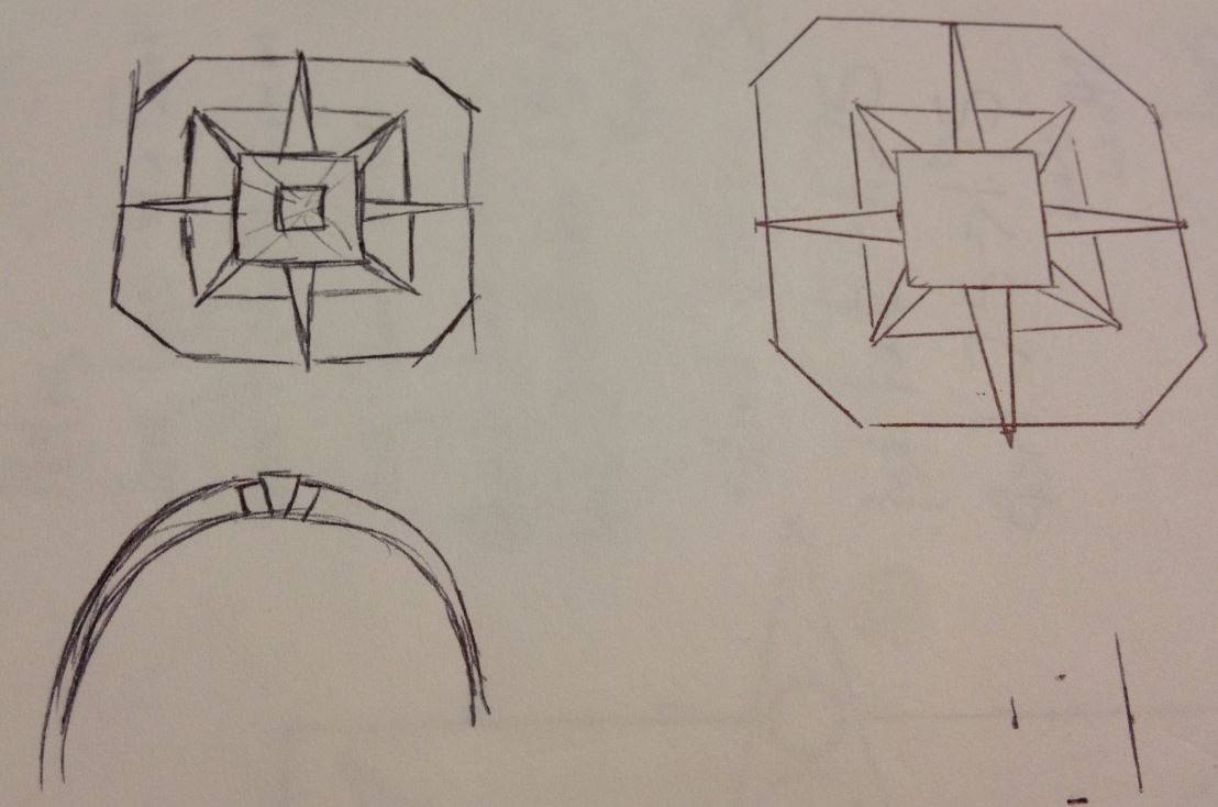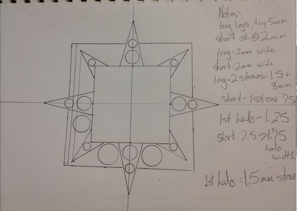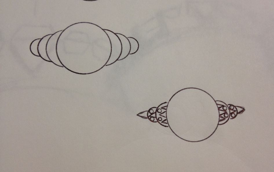 As you can see, I have come up with a pretty complex idea, and it’ll take a long time to put together something that works the right way. There are a lot of elements to fit together and it’s a bit like a puzzle. I think I know where I want to go with the next sketch, but when the sketches are this large (this is 10x the real size of the gems) it tends to take longer to do even a minor revision.