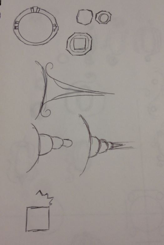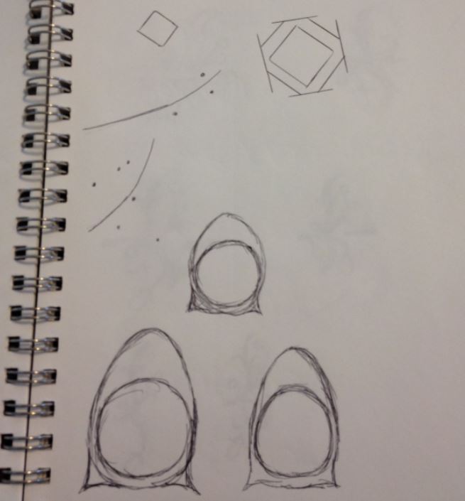 Color is going to come into play in a big way on this piece, but that probably won’t be seen on paper, because I do not feel comfortable at all adding color to my sketches at the moment! Colored gems seem to have a unique and irritating way of making their “look” impossible (or at least pretty difficult) to capture on paper. Must go practice!