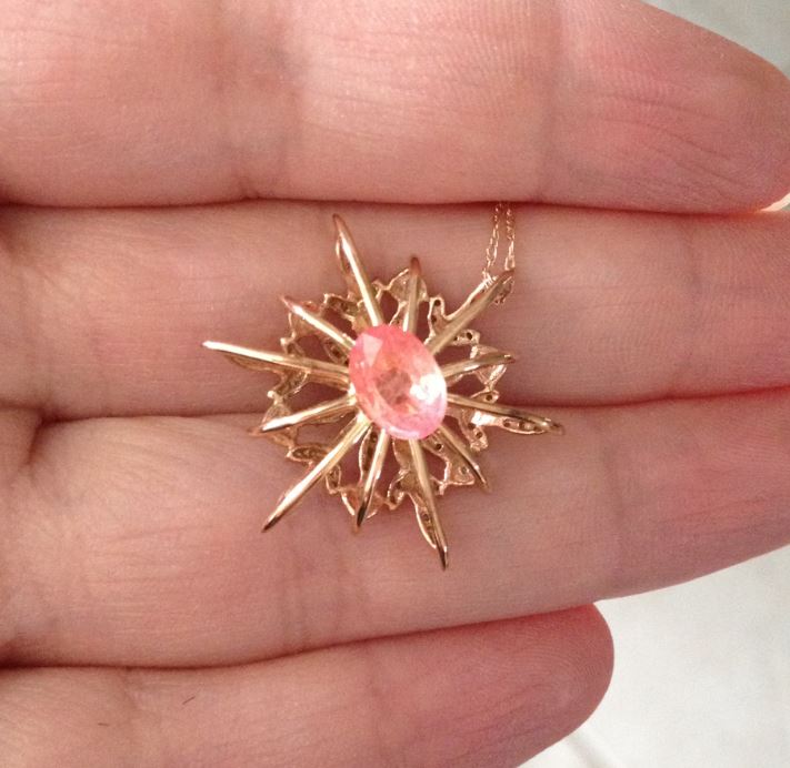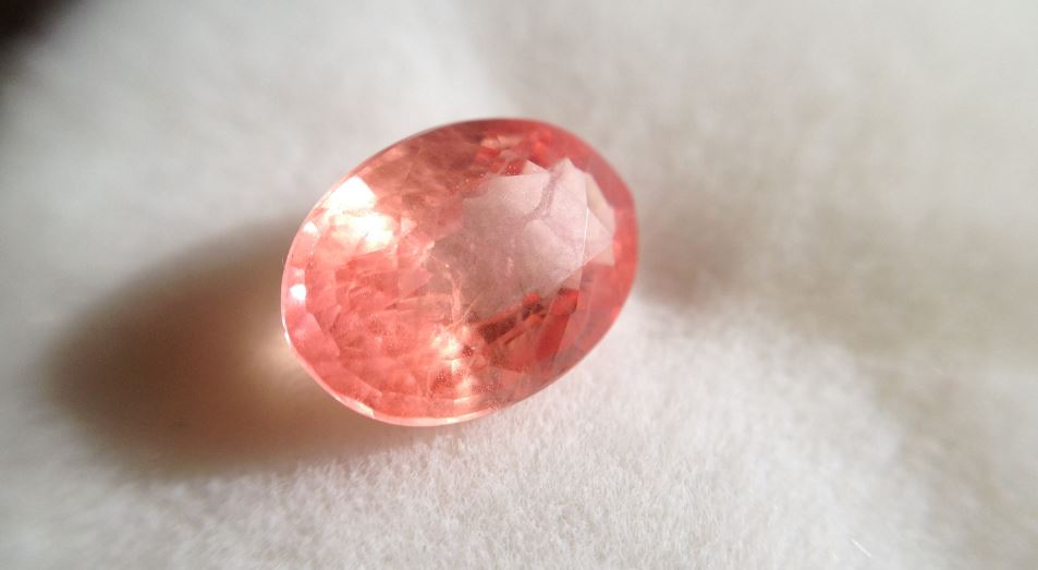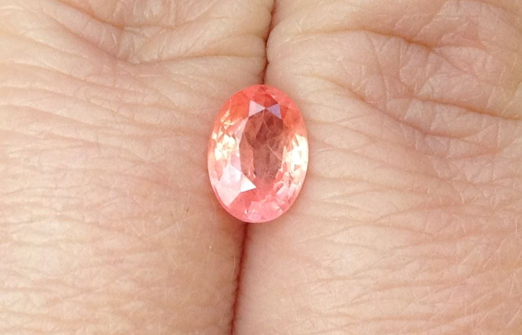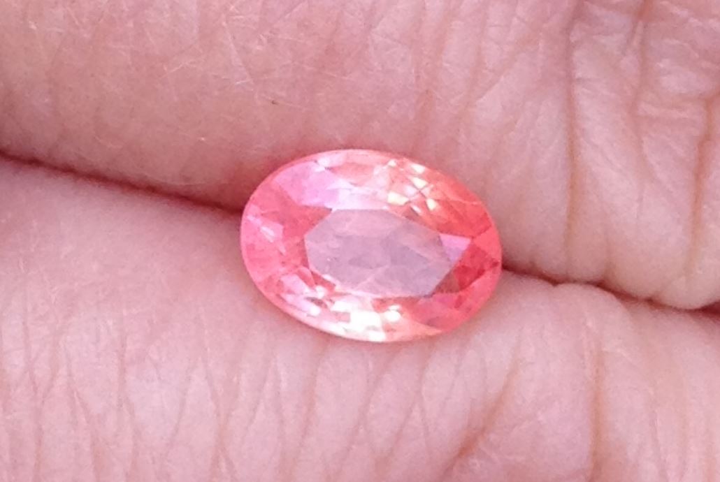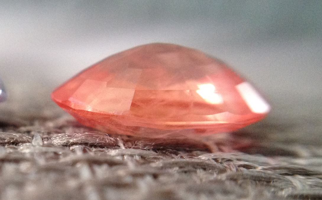 I haven’t had this stone for that long, but it became a quick favorite. I am not a big orange person, but even as a little girl, I was into peach colors. Which is what the padparadscha should have in spades. You might recognize this stone from a previous post.
