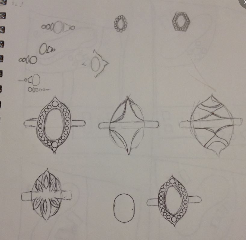First I wanted to address some of the stone’s issues, for instance disguising the window as much as possible. So I wanted to put a detailed relatively solid gallery. I think that designing for stones that have problems is a lot more fun than perfectly cut stones, if I’m totally honest.