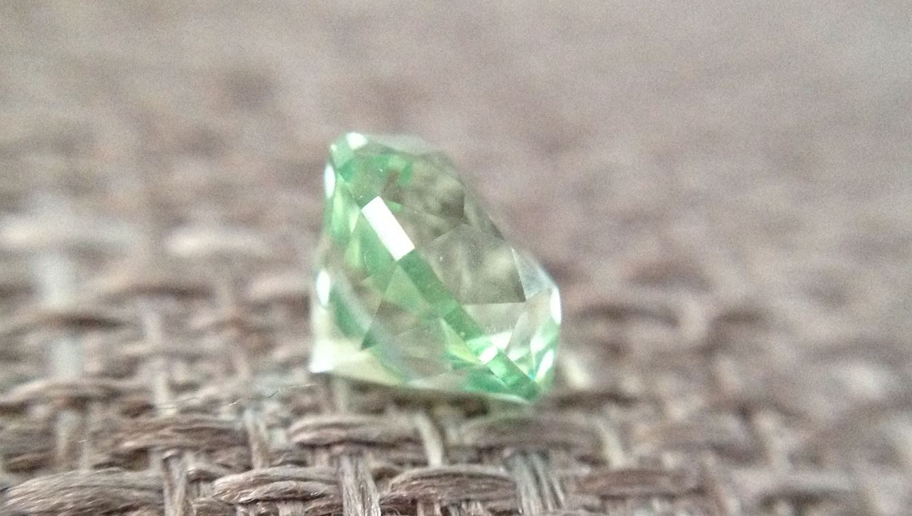 The trade ideal dictates that the more saturated, the better, and the more blue in the green, the better. This one is not deep enough in tone, or saturated enough to be considered the trade ideal, but it a beautiful little gem that’s internally flawless.