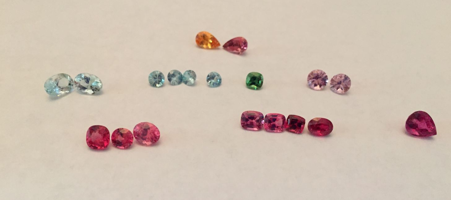 These babies below just went to a new home! (Tsavorite, spessartite, spinel, aquamarine, rubellite, tourmaline and zircon.)