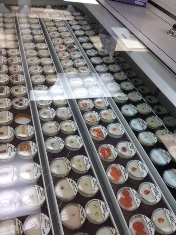 One of the sapphire cases. this one is for blue sapphires. There is also a “fancy colored sapphire” case that has the purples, pinks, yellows, oranges, greens and Montanas, as well as a ruby case.