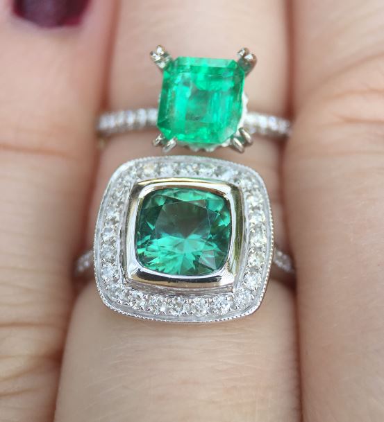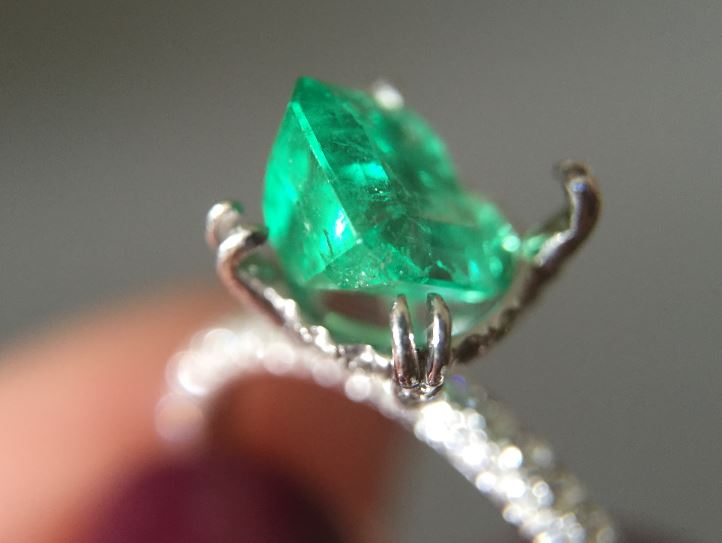 This particular emerald doesn’t have a ton of inclusions, making it pretty rare for an emerald. Just enough jardin to give it that glow factor, which is so highly sought after in these green beauties.