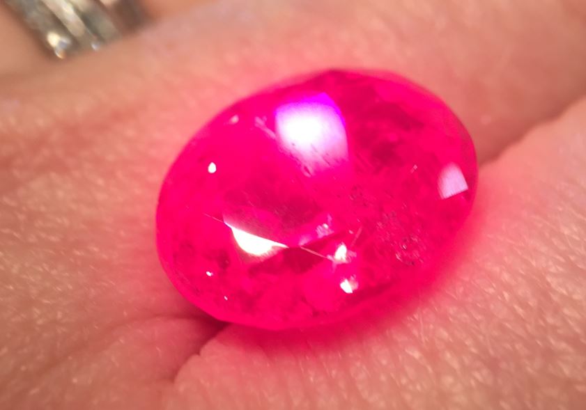 While my companion was digging through red spinels, I was amusing myself going through a massive parcel of smaller red and pink spinels, pulling out stones that talked to me and putting them on a gem sorting tray. Most of these were the largest in there, but there was one that had color that just popped out at me.