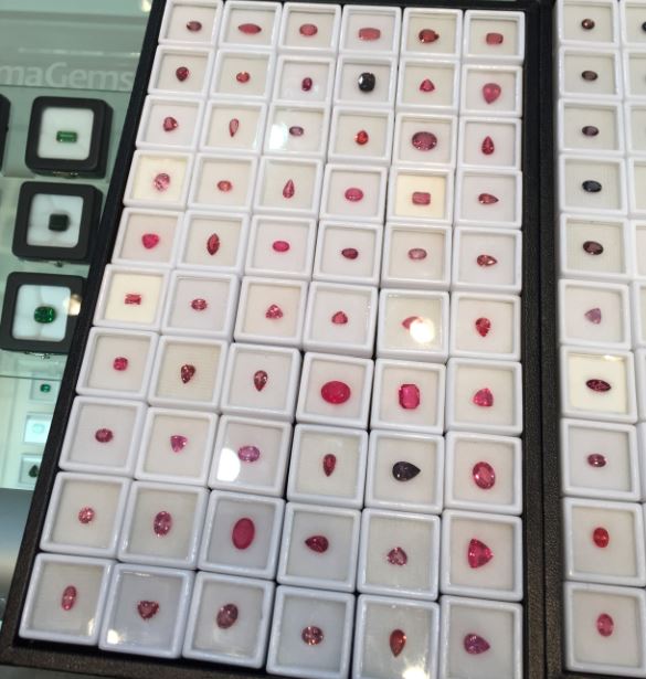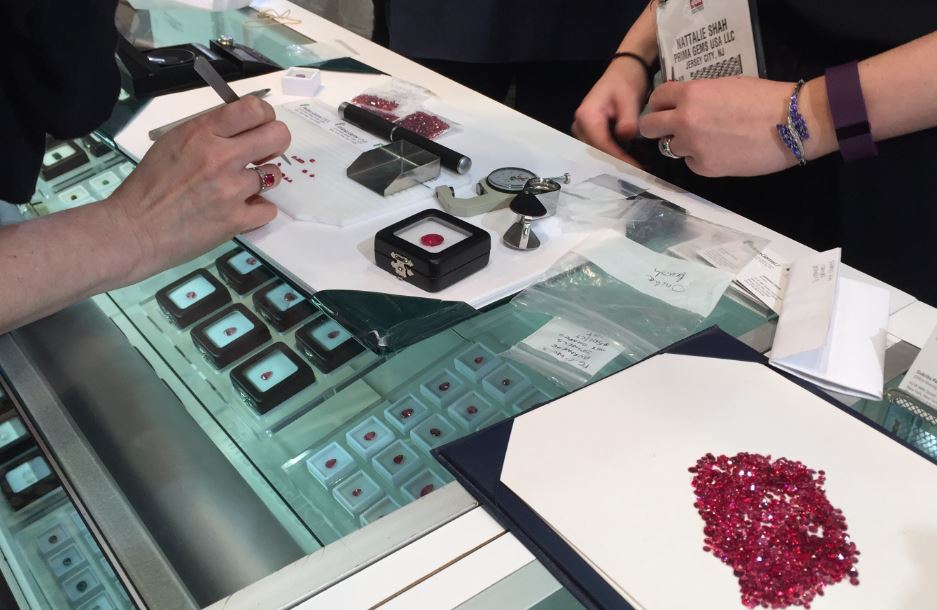 I just want to say that Nattalie Shah is an angel. My companion was seeking out red spinels and green garnets, but in the meantime, I had every single spinel pulled out of the case and had them spread out all over the counter. Not joking: