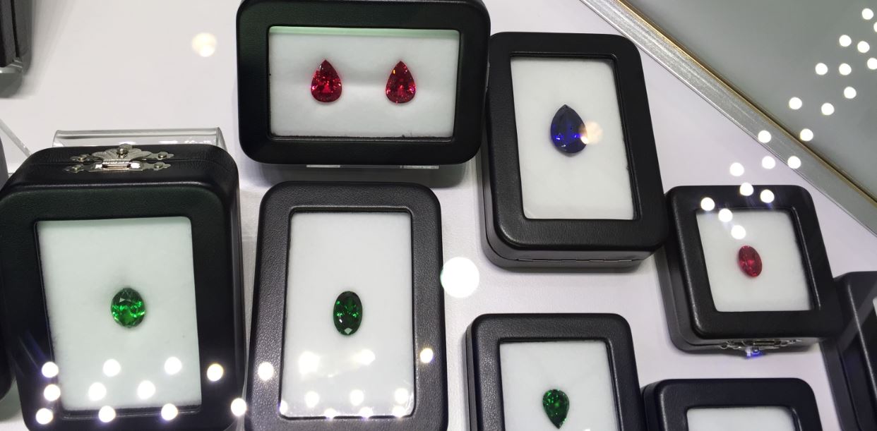 A horrible picture of some of what was in their display case. I only asked to see the biggest, but there were some heart wrenchingly beautiful spinels and tanzanites along with all of the greens.