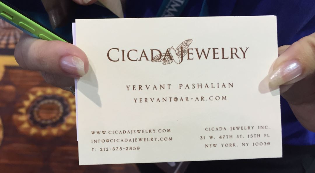 NOW, one company that did something besides your every day diamond halo was Cicada Jewelry. Don’t get me wrong, they had some diamond halos, but that wasn’t all they had. So I wildly sketched some ideas and noted some color combinations. I wasn’t even tempted to take pictures, because I respected their work enough to not want to copy it, but to use some of the lessons learned while standing in that aisle admiring their work. They have a minimal presence online and on social media because they are so protective over their work and designs. They actually do not even photograph and publish most of their work so that they don’t get copied. And for good reason, their items were exquisite, definitely the best I saw at the show. I got a shot of their business card though! Their booth was what the entire section of Luxury Salons should have been.