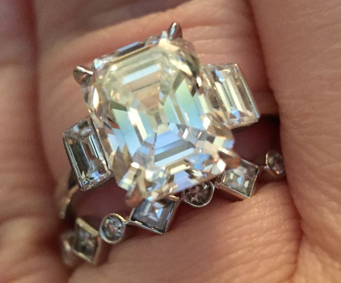 Now, once I got this on my finger, I absolutely did NOT want to give it back. Another Jewels by Grace item, a to-die-for antique emerald cut diamond. Positively epic. I am such a sucker for the step cuts.