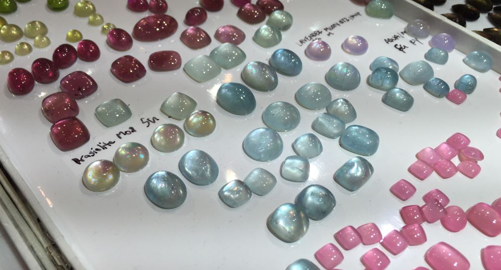 I would have to go back through my business card collection to tell you who the vendor was, but they had some of the coolest stuff – adding some mother of pearl to the back of some translucent cabochons of different colors. I was fascinated by the resulting light play and will have to delve further into the idea of making jewelry with it when I have more resources to do so.
