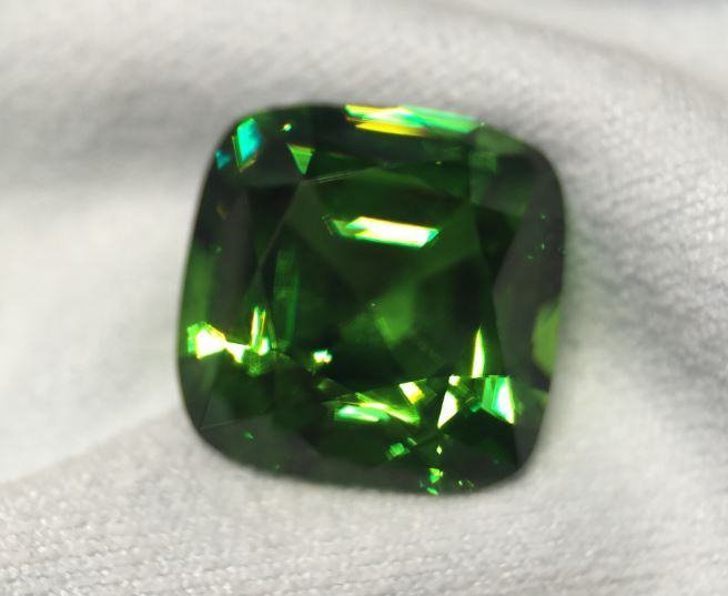 One of my most entertaining visits from this day was when I went by the tsavorite.com booth and happened to meet Bruce Bridges. So I asked him to pull out the biggest example of tsavorite he had in the cases, and he polished it up with a clean cloth while I pulled out my OlloClip and readied my camera. They asked to see the photos I took and were enthralled with the quality of the photograph I had just taken using just my phone and a relatively inexpensive macro lens. Bruce complimented my photography skills, and I taught him all about the OlloClip. I’m pretty sure he’s now a convert and will be purchasing one, if he hasn’t already. This stone is 12.5cts and I was afraid to touch it, knowing how rare (and expensive!) tsavorites are of this size. The photo does not do it justice, as the stone has less yellow in it than appears on my laptop, or on my phone, for that matter. Silly greens, being difficult to capture correctly.