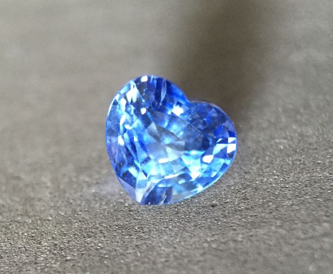 The same heated precision cut sapphire is above, and a heated blue heart below.