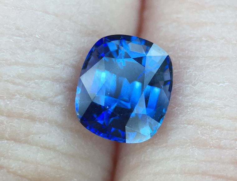 Two heated blue sapphire cushions, below being precision cut, but both are fantastic examples.