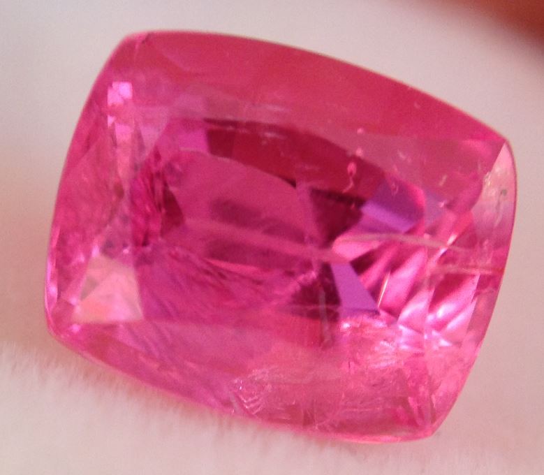 I would describe the above spinel’s color like this: Blue in hue, with medium-dark tone, medium to strong saturation, with a slight green-gray secondary modifier. This stone also shifts to a purple under fluorescent lighting, the rest of the information stays the same in both colorways.