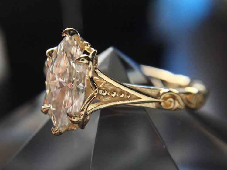 Due to it’s split shank style, it was a simple adaptation from an oval to a marquise, and one that worked out wonderfully.