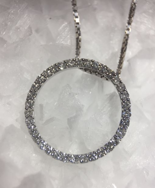 This diamond necklace would be excellent for a lady who loves larger but still classic pieces that bring a lot of sparkle to the decolletage.